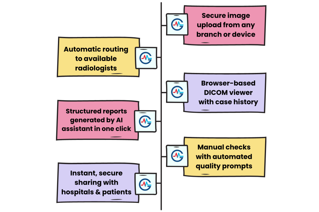 Speed is critical in emergency and high-volume centers. Through real-time upload, automatic case routing, and AI-assisted reporting, Mediog reduces manual delays and supports faster decisions. Gooddays Diagnostic now handles 30% more daily X-ray studies without additional staff, showing measurable workflow gains.